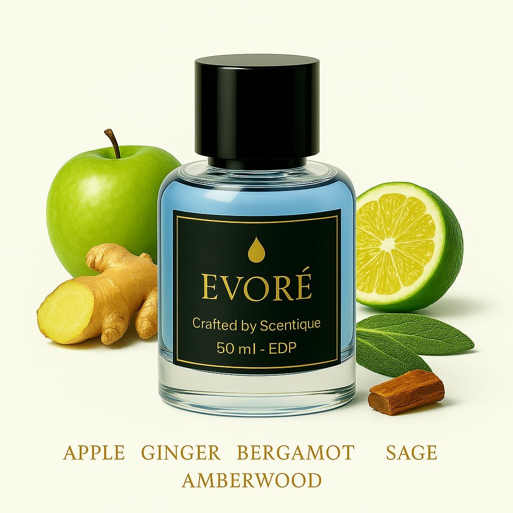 A bold fusion of freshness and strength — EVORE defines the confident modern man. It opens with vibrant notes of bergamot, ginger, and apple, leading into a sophisticated heart of sage, juniper, and geranium. The scent settles into a deep, masculine base of amberwood, cedar, and tonka bean, leaving an unforgettable trail of elegance and energy.
