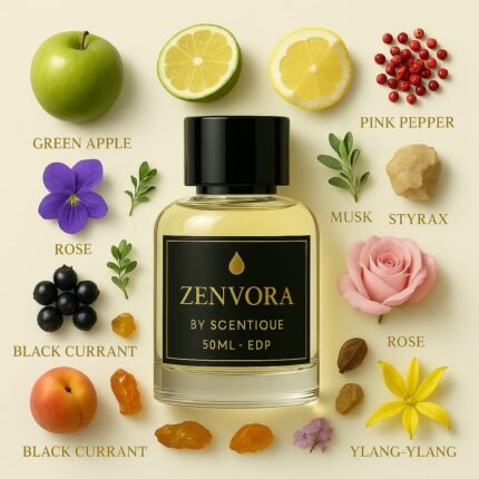 خوبصورتی اور وقار کا امتزاج — ZENVORA اُس بااعتماد خاتون کے لیے ہے جو اپنی موجودگی سے ایک منفرد تاثر چھوڑتی ہے۔ آغاز ہوتا ہے سبز سیب، برگاموٹ اور پیچولی کی دلکش تازگی سے، جو آگے چل کر گلاب، مشک اور صندل کی لکڑی کی نرم خوشبو میں ڈھل جاتی ہے۔ آخر میں عنبر اور بلیک کرنٹ کی گرم اور دیرپا خوشبو اسے مکمل بناتی ہے۔