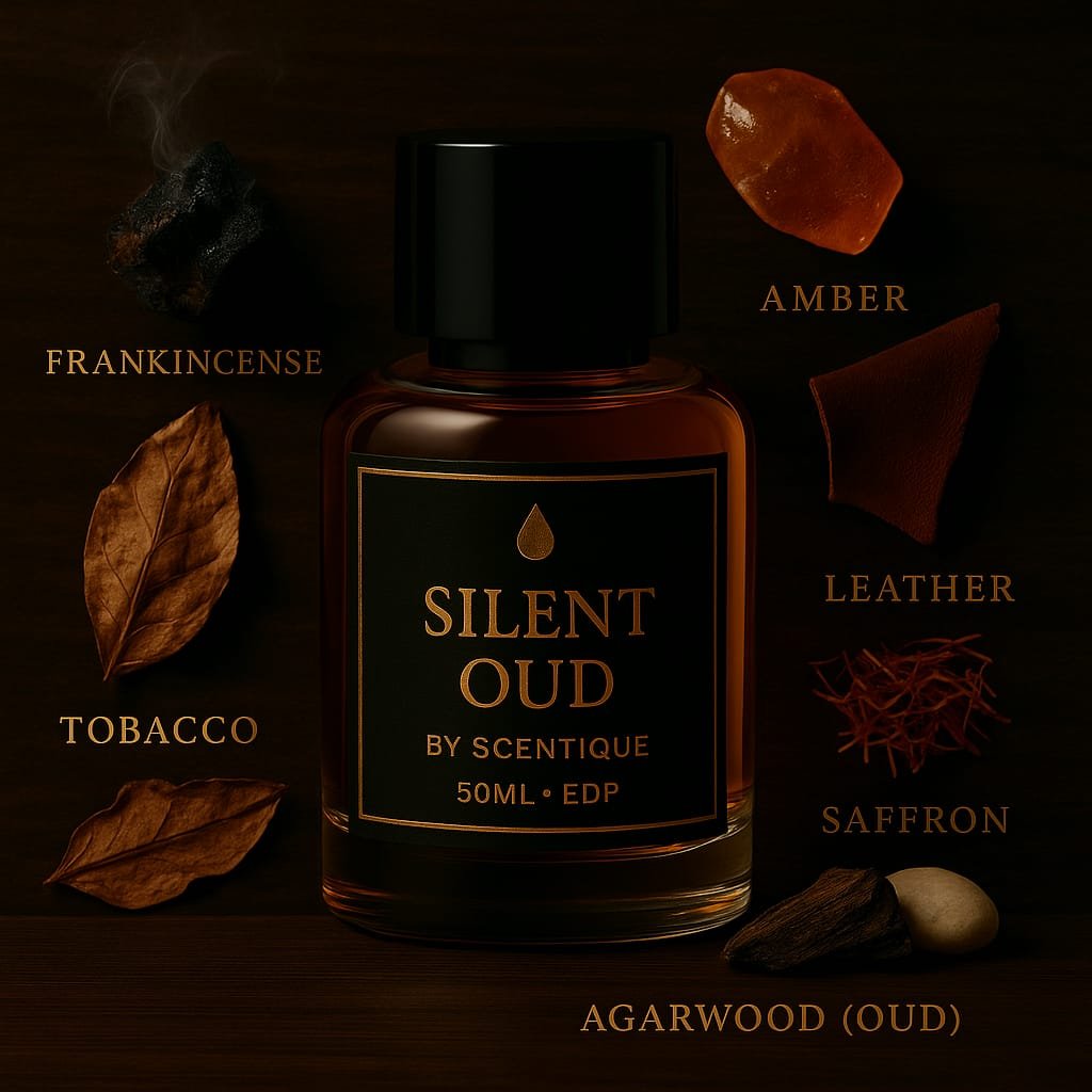 Immerse yourself in the mystery of Silent Oud, a luxurious unisex fragrance that blends the richness of oud with warm, sensual notes. Opening with sparkling saffron and floral hints, it evolves into a heart of rich oud and spices, resting on a deep base of amber, musk, and woody undertones. Perfect for those who desire sophistication and lasting elegance.